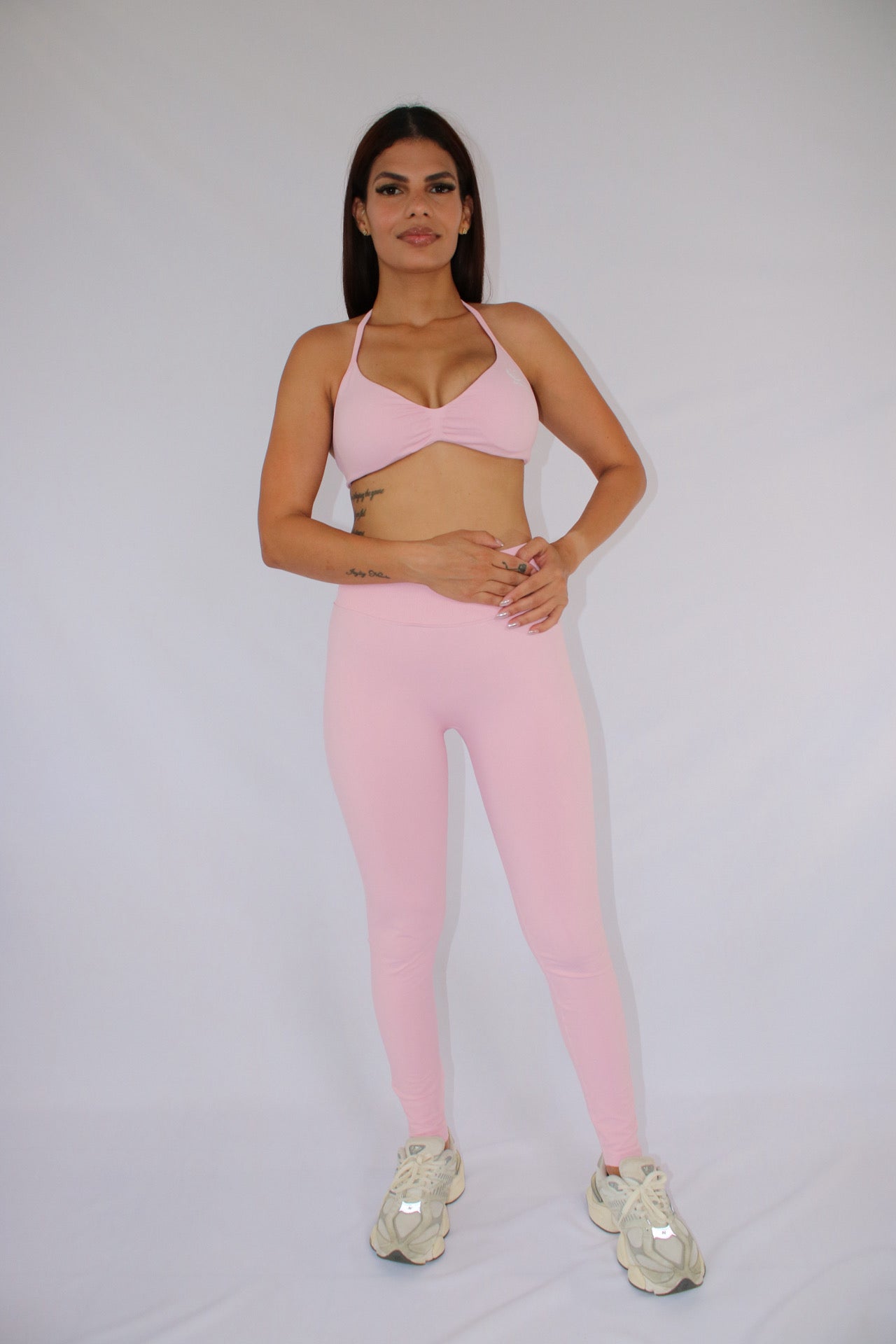 Mid-Waist Yoga Leggings Compression Butt-Lift Pink